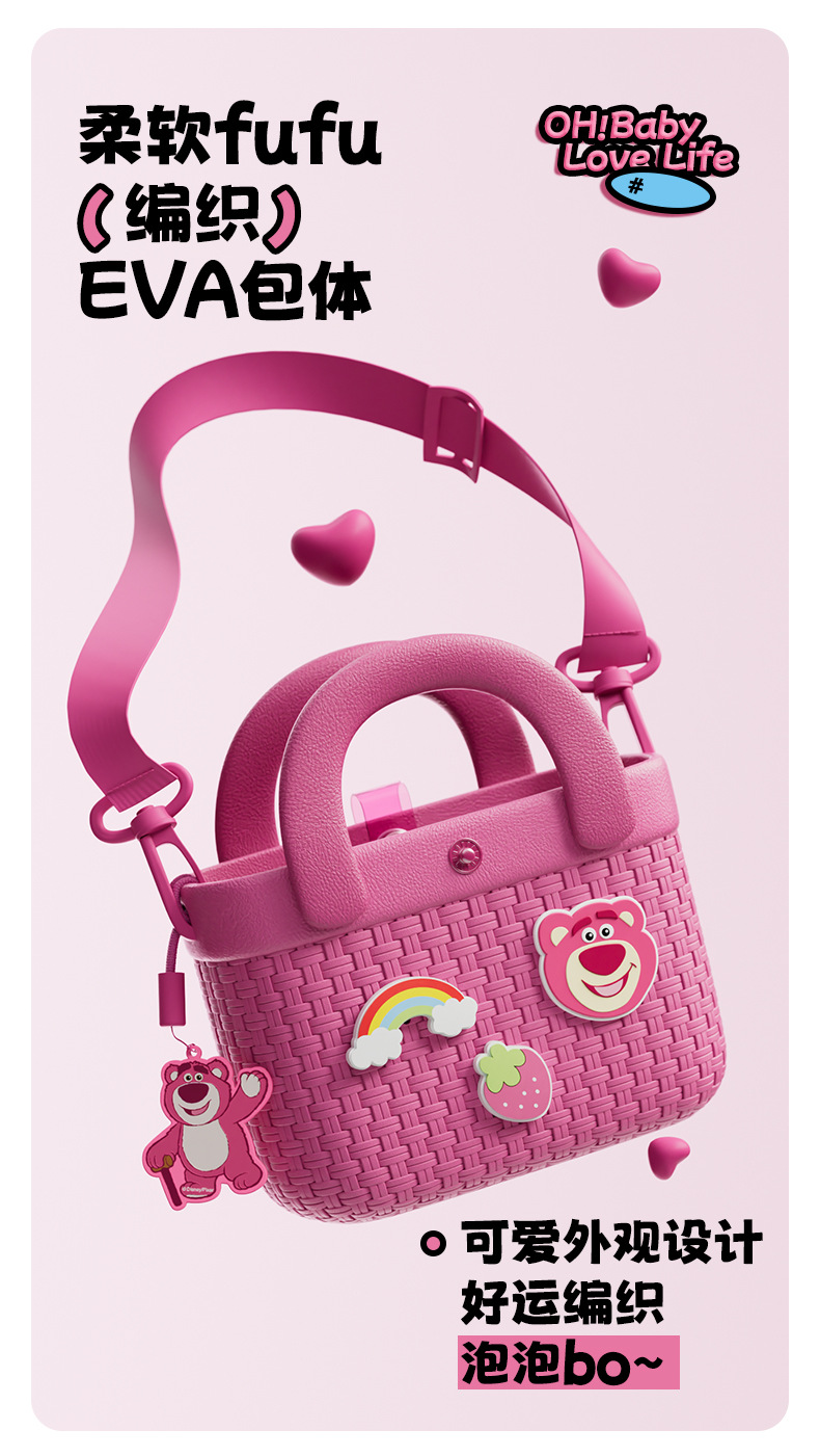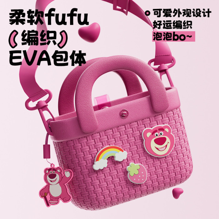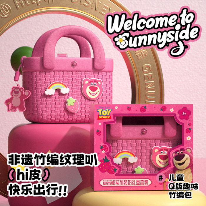 草莓熊兒童包包女可愛斜後背包多巴胺大容量小巧竹編紋理手提小挎包