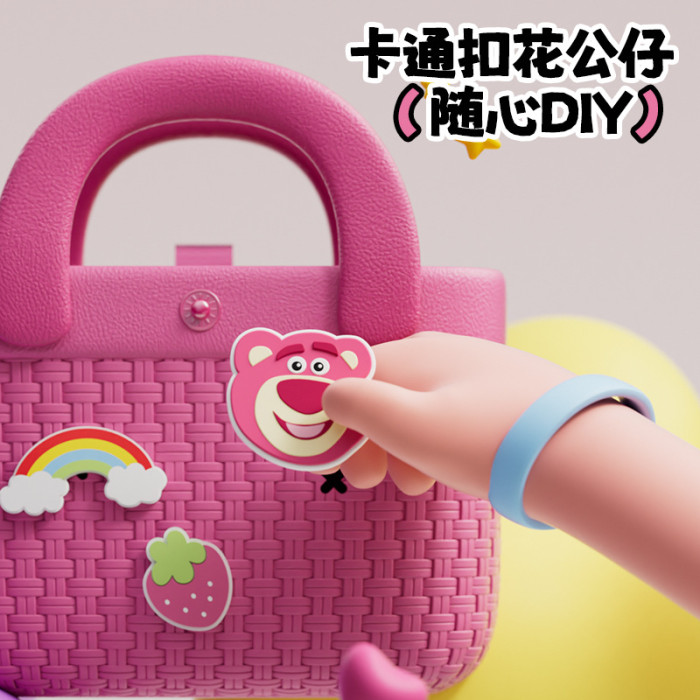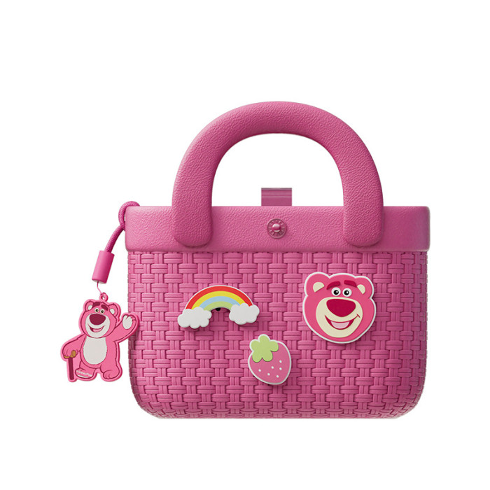 草莓熊竹編紋理手提包