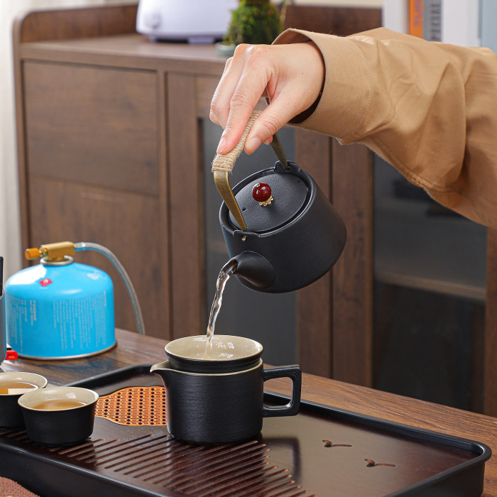 黑包-黑陶紅珠提梁+4000瓦防風爐+燒水壺