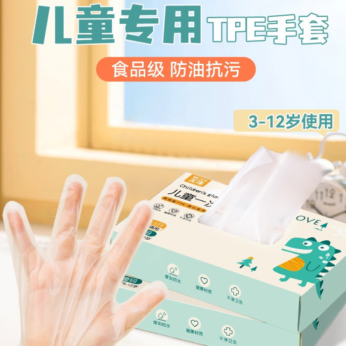 兒童一次性手套食品級寶寶小孩家用tpe加厚耐磨塑膠盒裝獨立