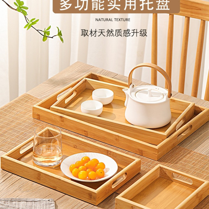 托盤竹木長方形茶盤商用竹製茶杯水杯收納家用大號酒店餐廳燒烤盤
