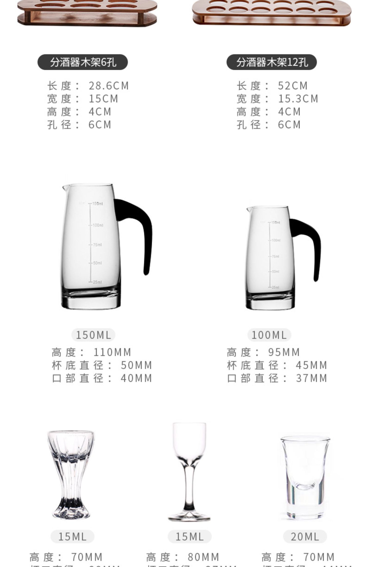 6衹黑把手直身款150ml+6衹15ml高腳白酒盃+12孔方盃架