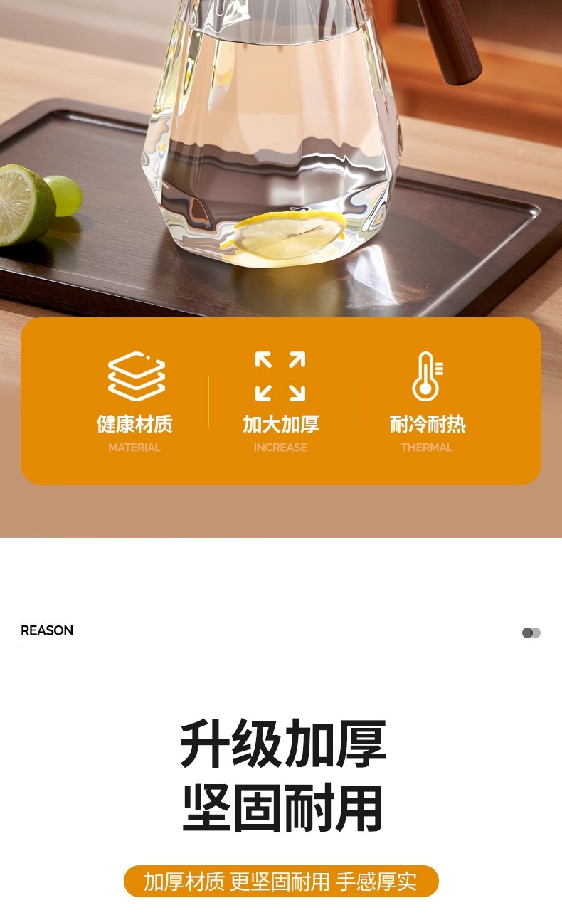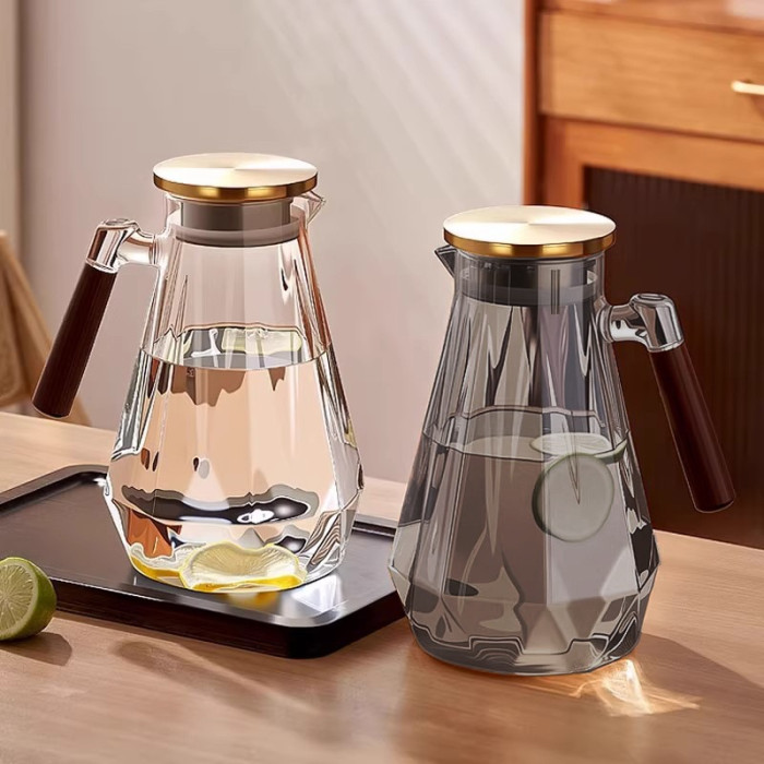 【透明色】鑽石冷水壺1600ml-木紋蓋(耐高溫200℃)