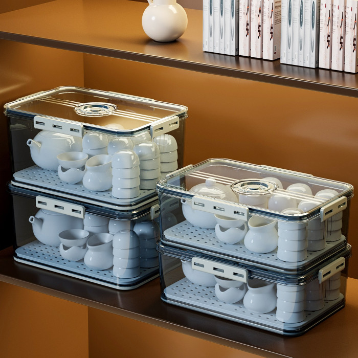 茶具茶杯收納盒防塵透明放裝杯子置物架功夫茶壺酒杯帶蓋櫥櫃整理