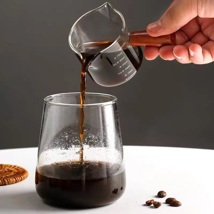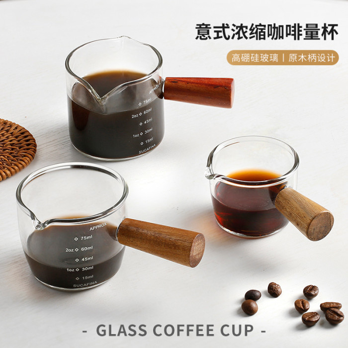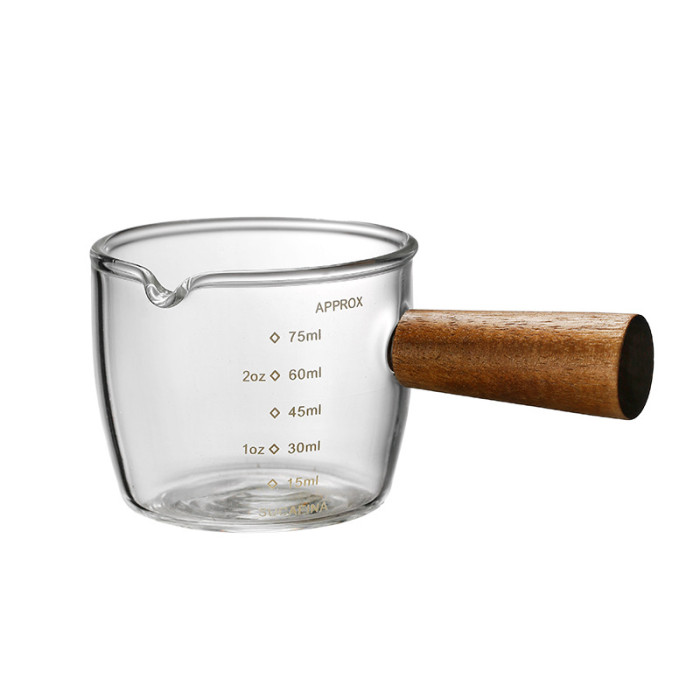 日式ins玻璃木柄帶刻度小奶盅 濃縮拿鐵意式咖啡小量杯小奶壺奶罐