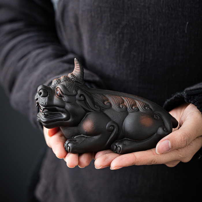 紫陶貔貅茶寵可養陶瓷家居擺件茶玩茶桌茶台裝飾茶具配件