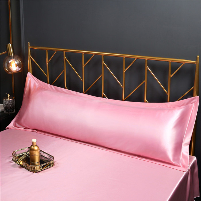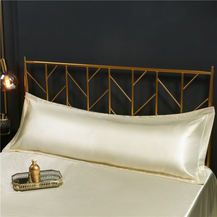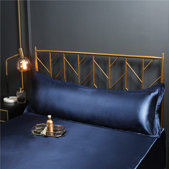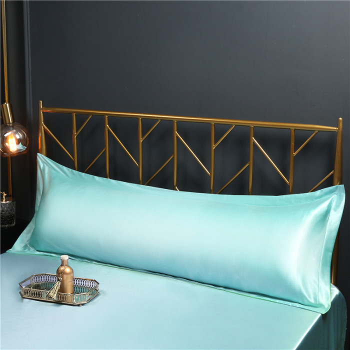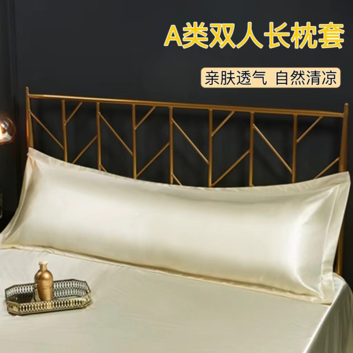 A夏季真絲長枕套單衹雙人情侶長枕芯套桑蠶絲純色1.2米1.5m枕巾罩