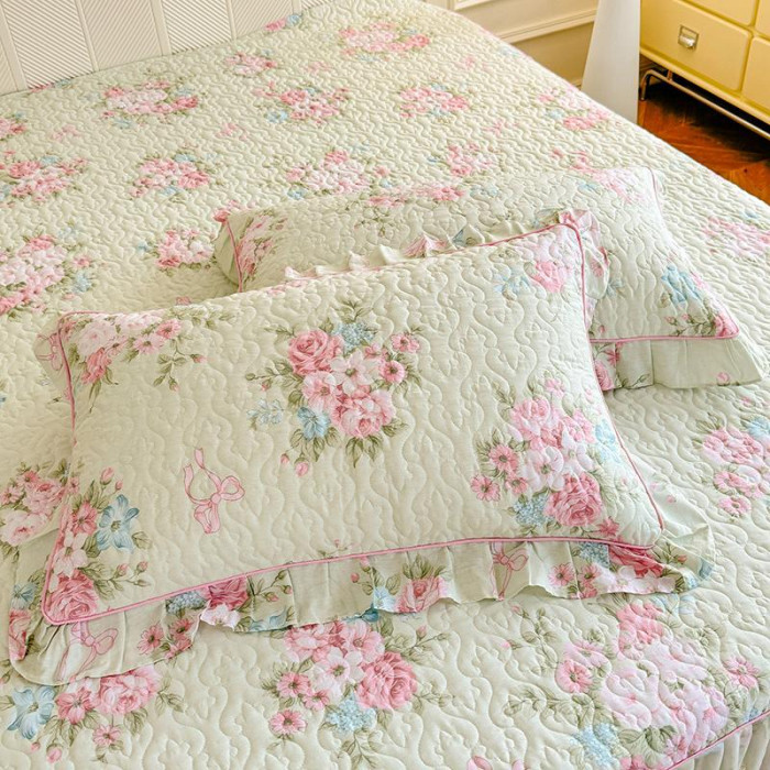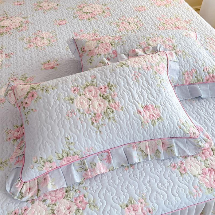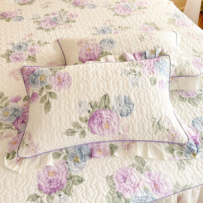 全棉夾棉加厚枕套純棉碎花荷葉花邊枕頭套48x74cm一對2衹裝枕芯罩