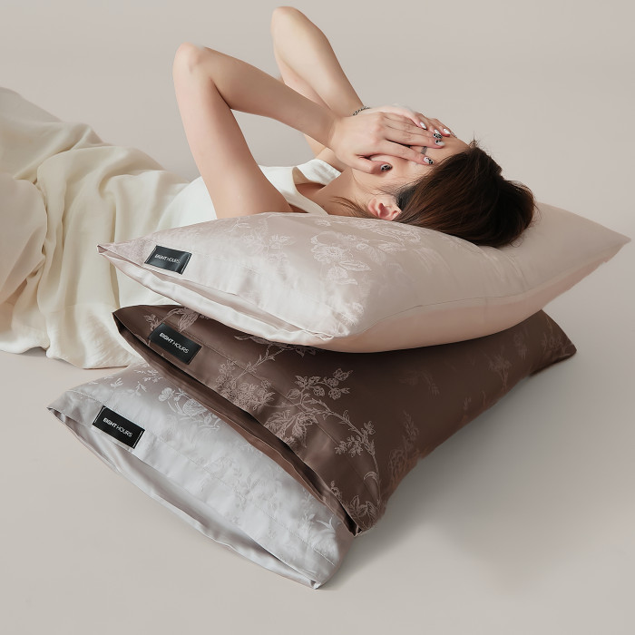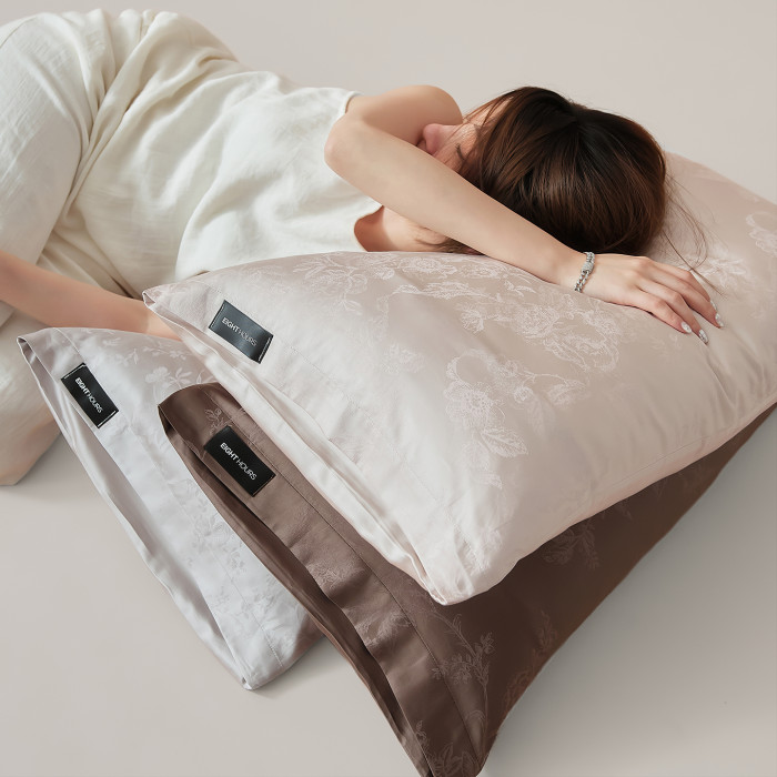 木悠簡約輕奢提花枕頭套夏季涼感柔軟絲滑蘭精天絲棉枕套48×74cm