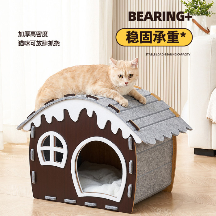冬季保暖封閉式貓窩安全感貓屋毛氈貓抓窩耐磨四季通用耐抓貓房子