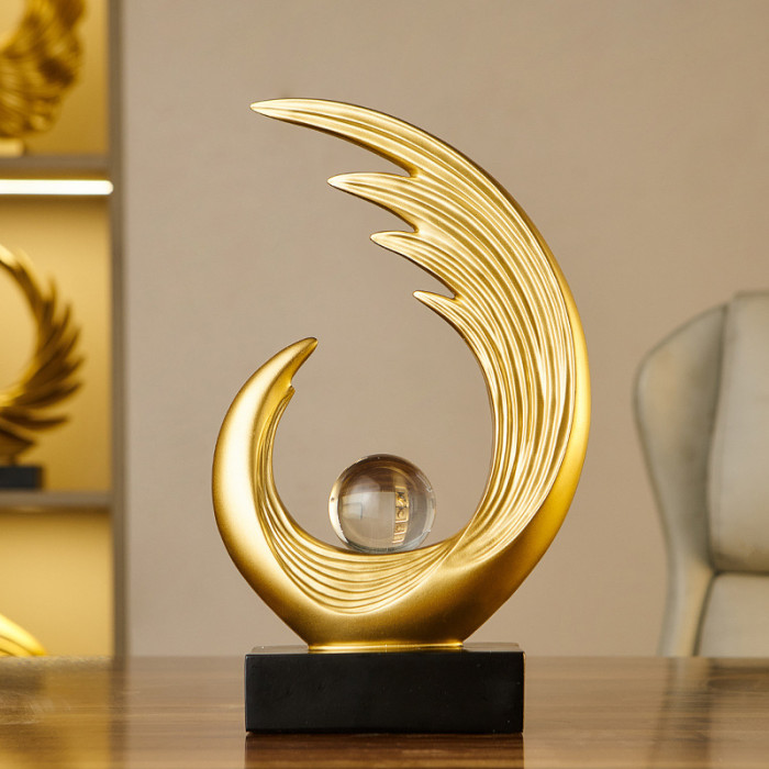 輕奢高級感金色羽翼桌面擺件辦公室酒櫃入戶裝飾喬遷新居開業禮品