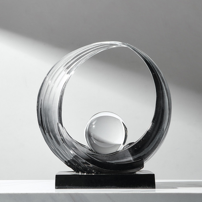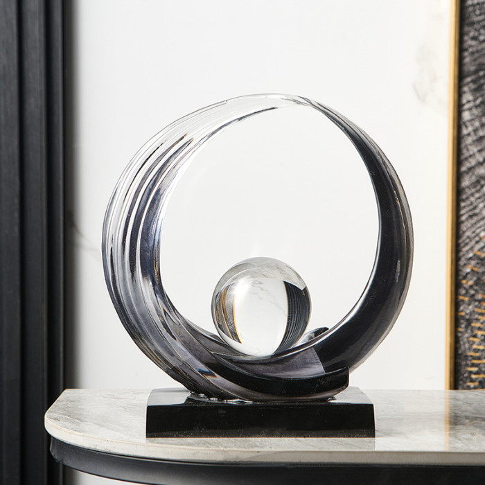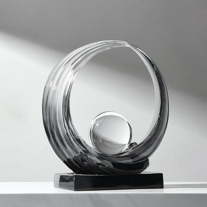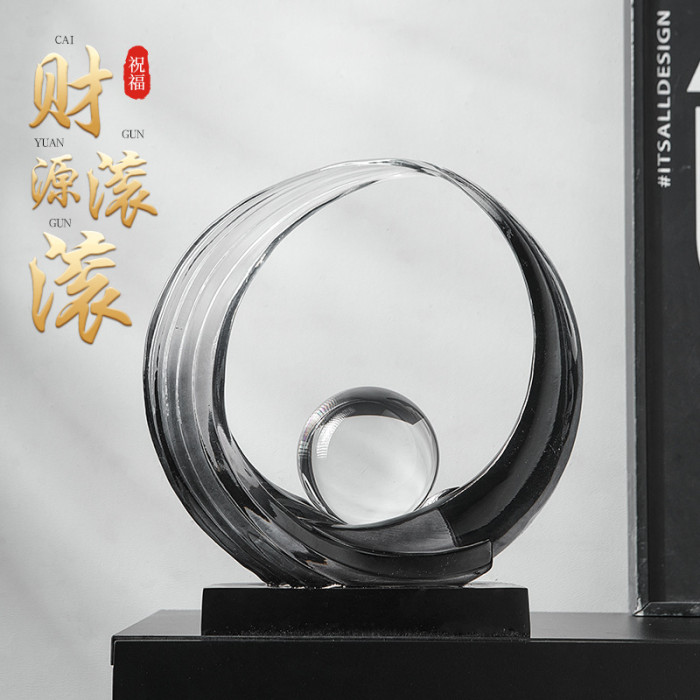 透明樹脂財源滾滾擺件-菸灰色