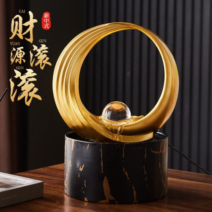 新中式藝術財源滾滾流水擺件辦公室客廳茶幾桌面裝飾喬遷開業禮品