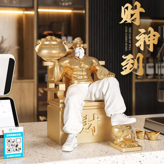 創意高級感財神桌面擺件客廳玄關店鋪收銀台裝飾喬遷開業活動禮品