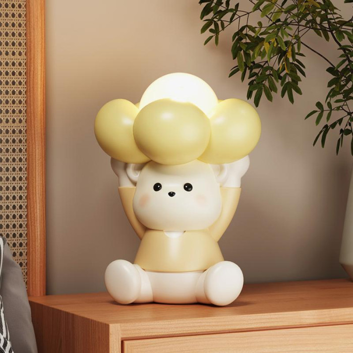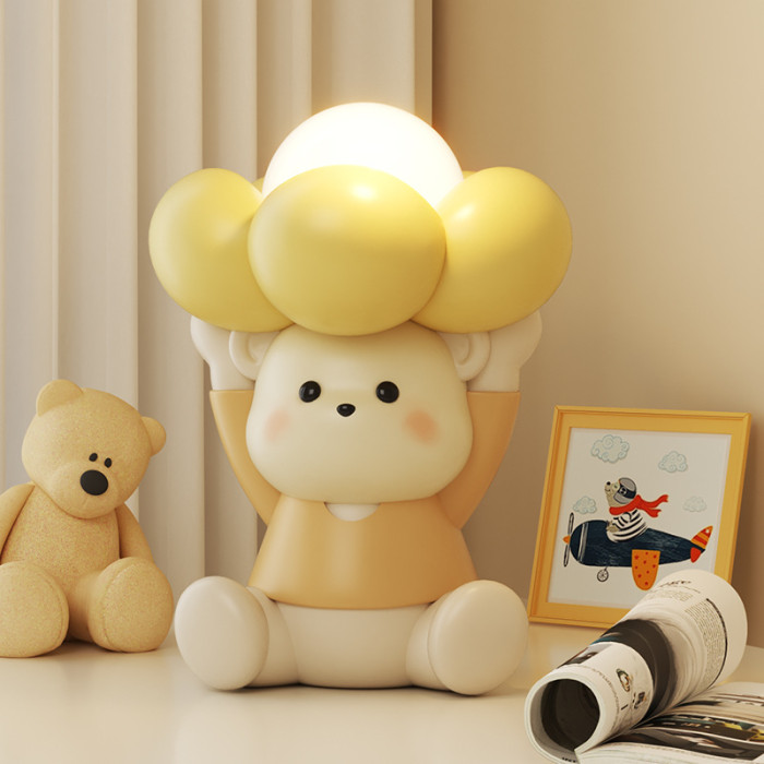 擧花小熊小夜燈臥室睡眠燈可愛兒童房裝飾喬遷禮物工藝品創意擺件