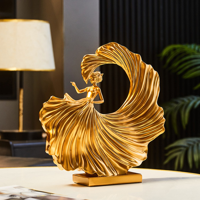 現代簡約金色舞者藝術擺件樹脂高檔客廳辦公室酒櫃玄關電視櫃裝飾