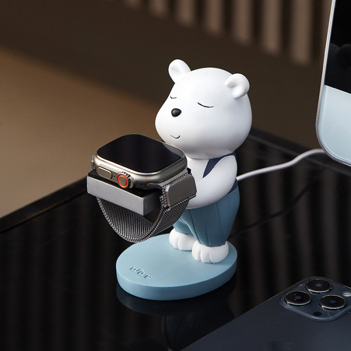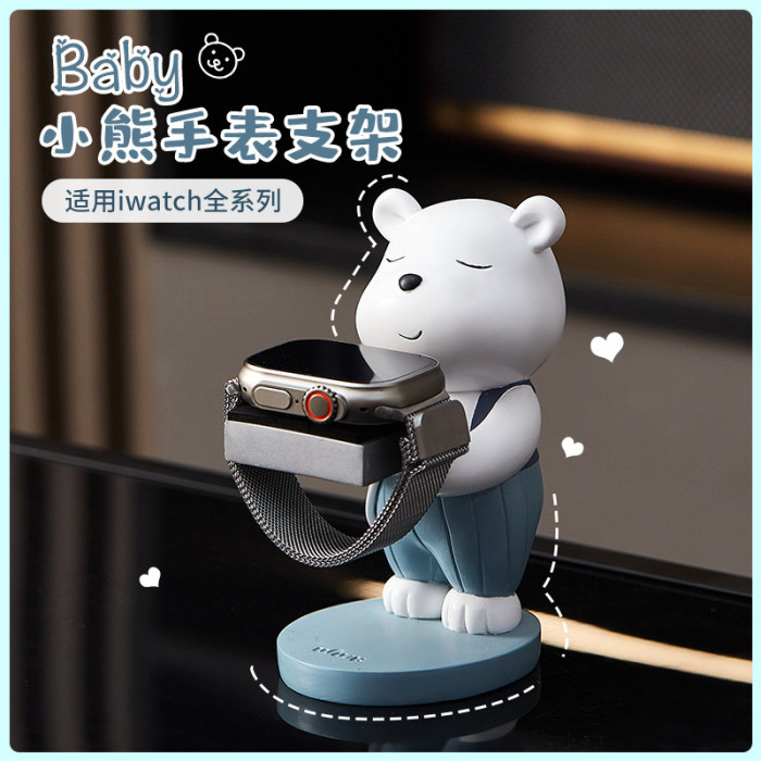 樹脂小熊可愛奶油風床頭桌面收納禮物工藝品創意擺件手錶充電支架