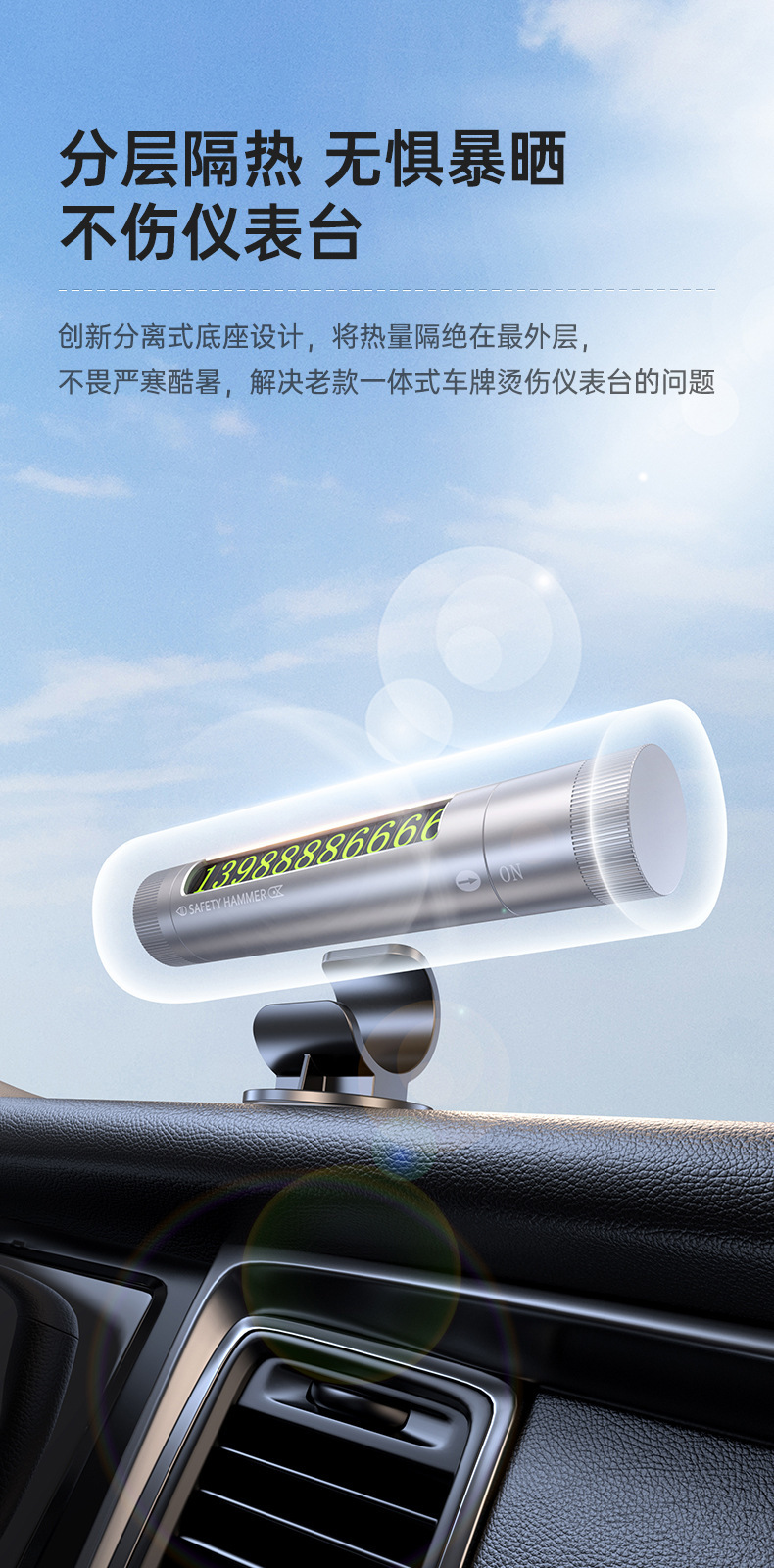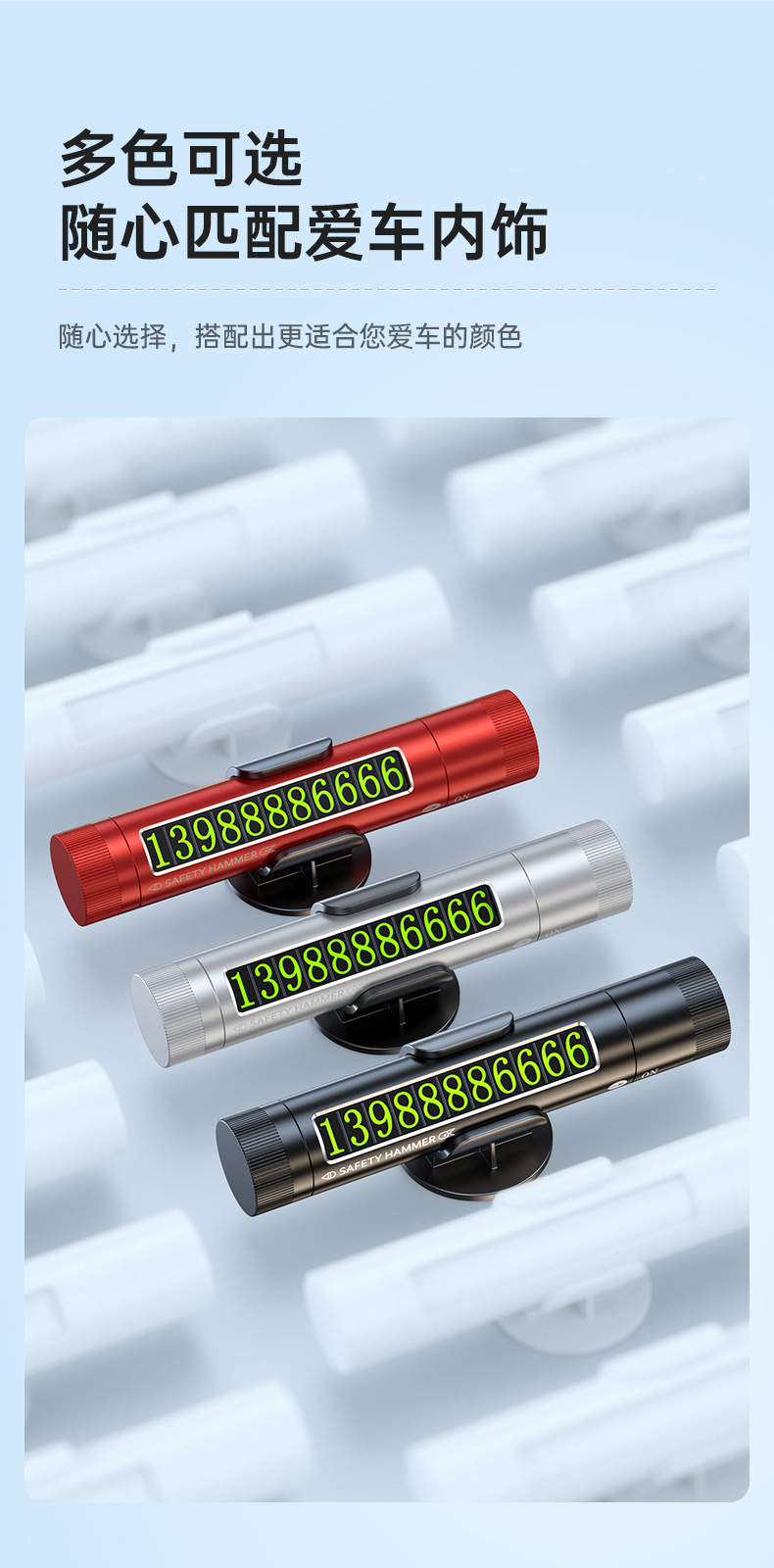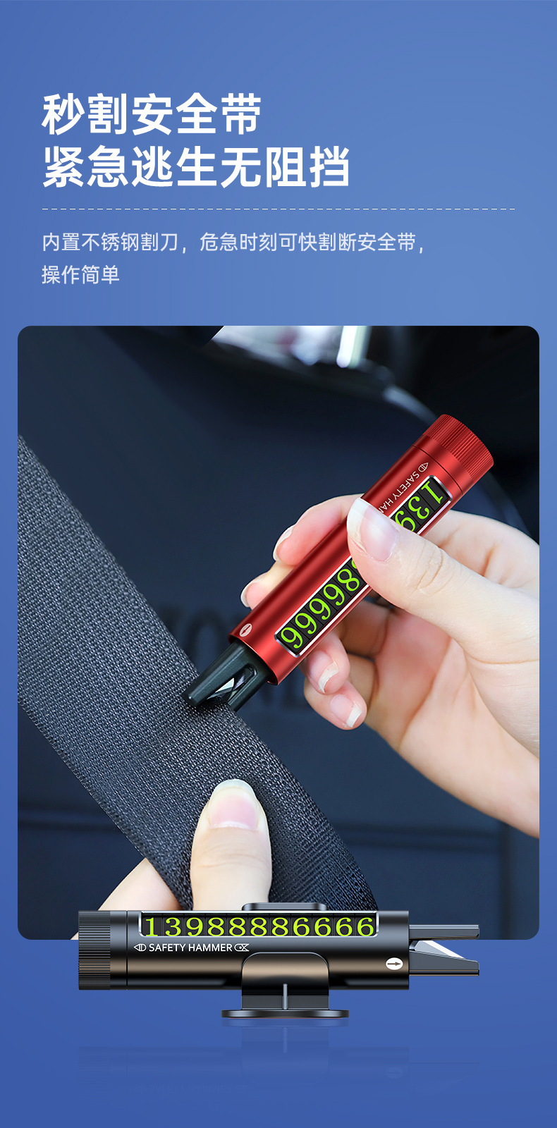 新品三合一汽車安全鎚迷你可攜式車用破窗器多功能停車牌停車號碼牌