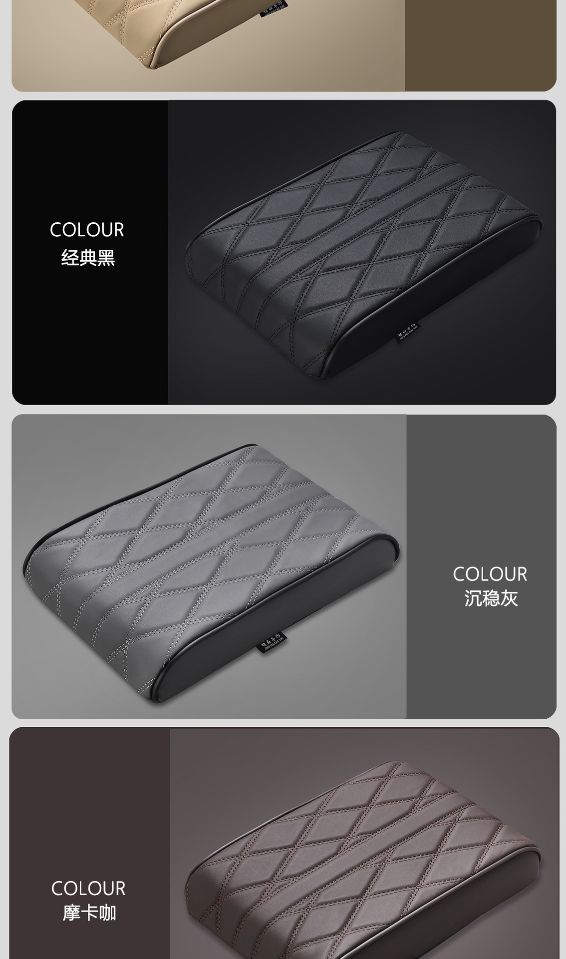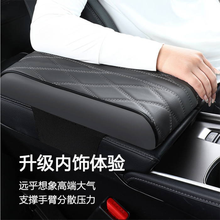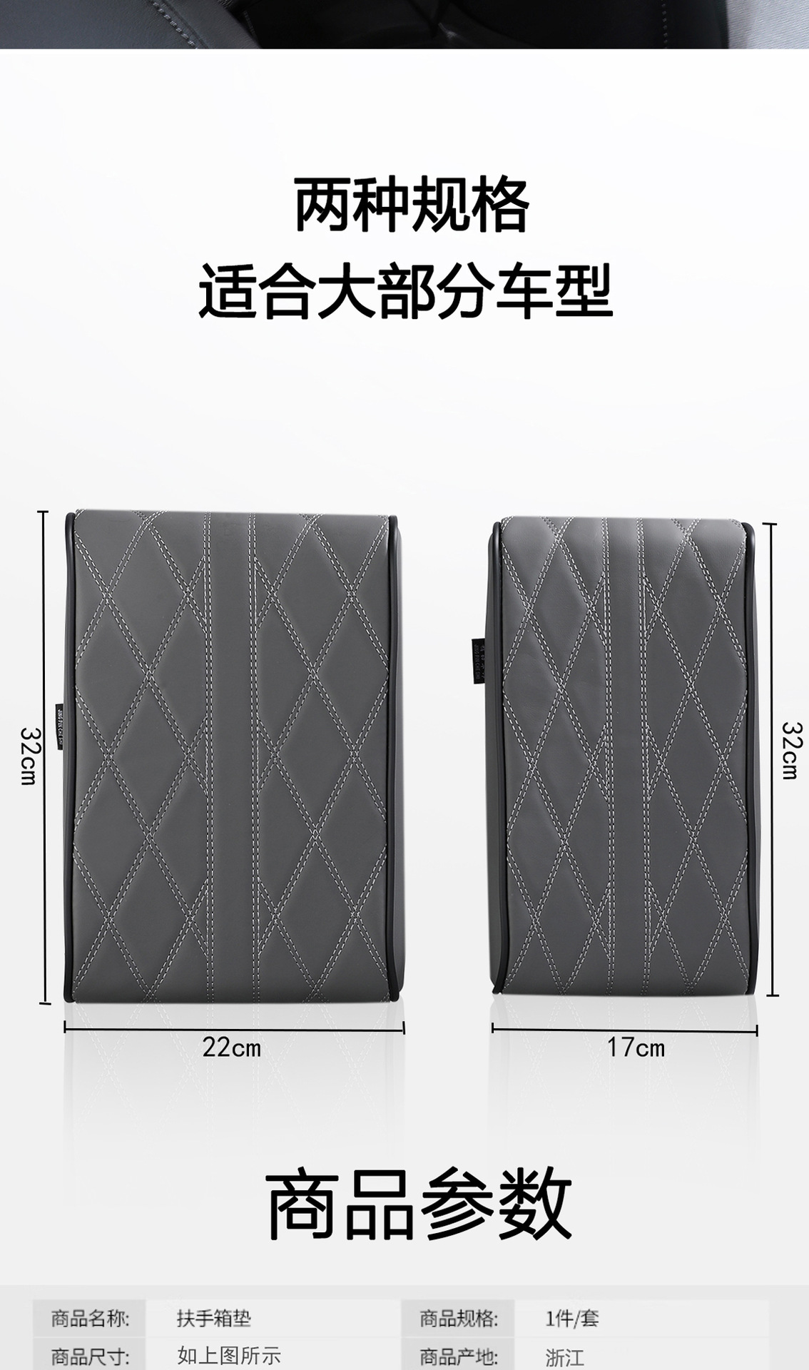 通用型汽車扶手箱增高墊記憶棉納帕皮車用扶手箱墊肘拖墊菱形款