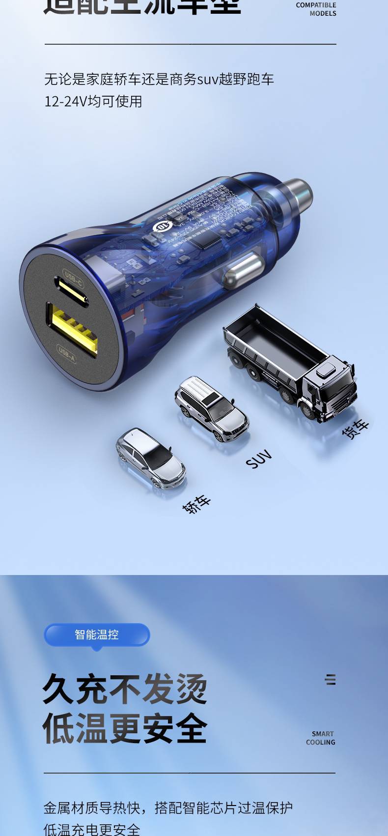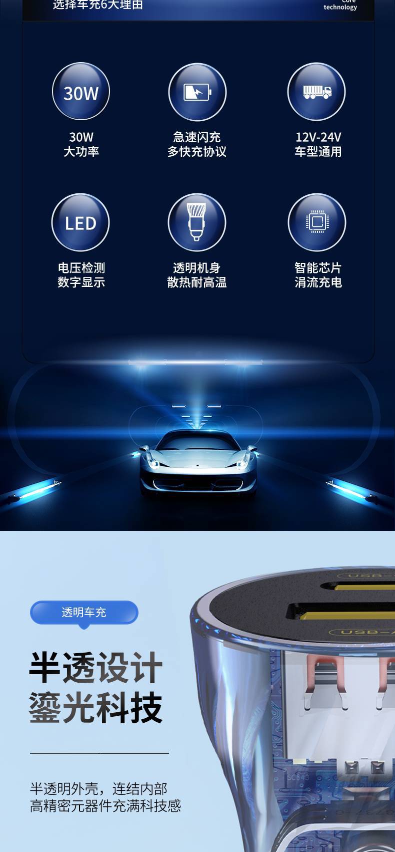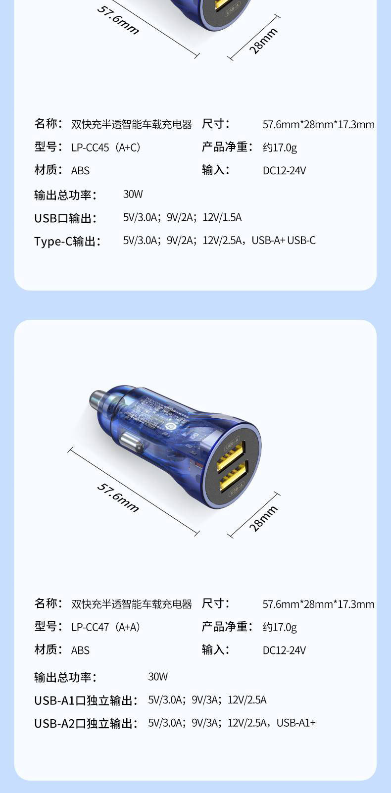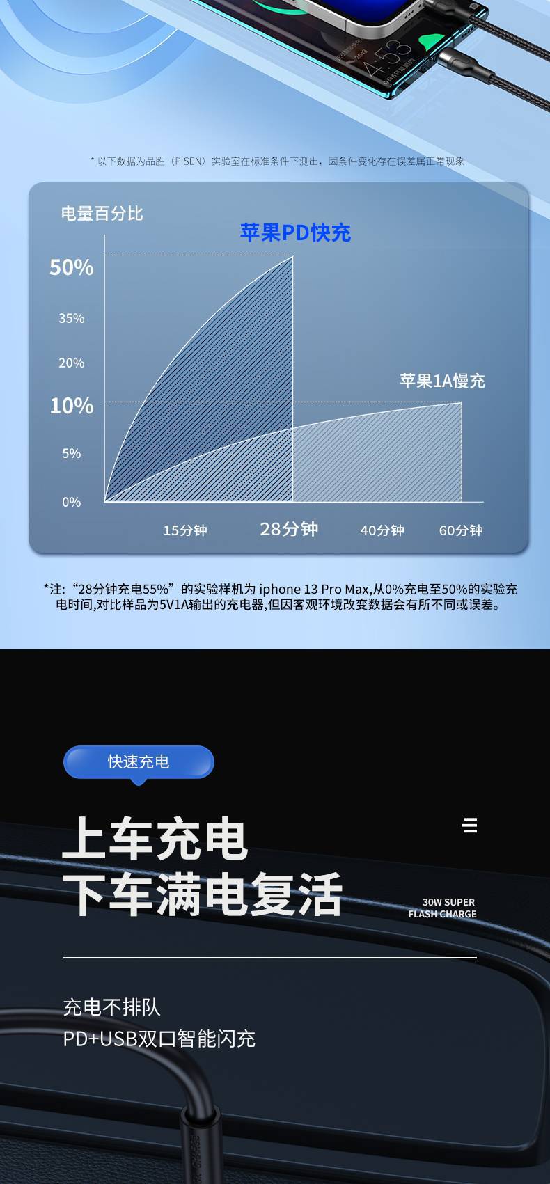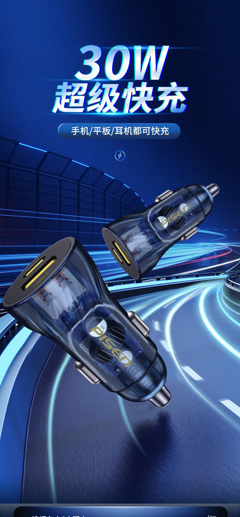 品勝車用充電器適用蘋果超級快充30W汽車點菸器轉換插頭usb車充