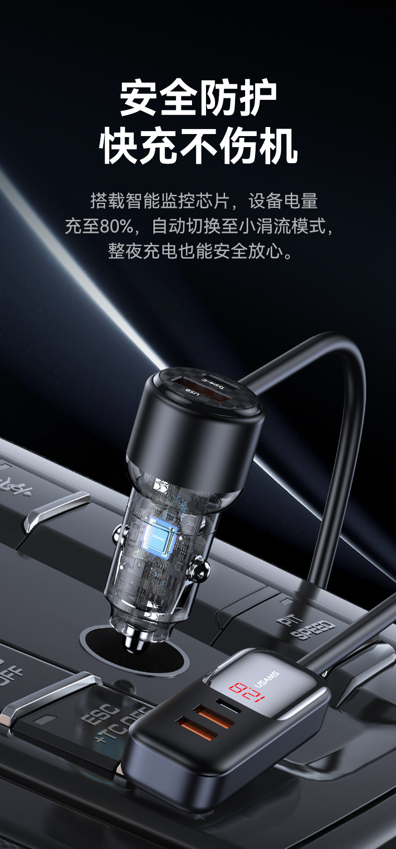 USAMS 汽車60W車充快充雙PD30W雙QC3.0車用充電器USB車充手機禮品