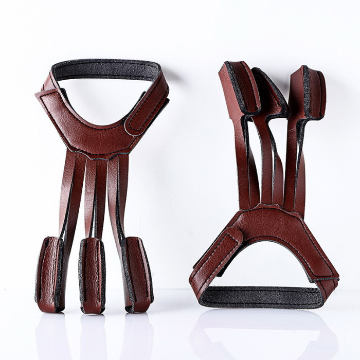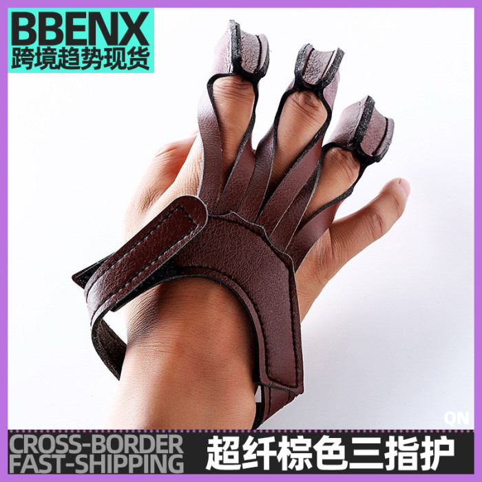 三指棕色超纖護指射擊射箭傳統反曲弓牛皮地中海防護射箭射擊護具