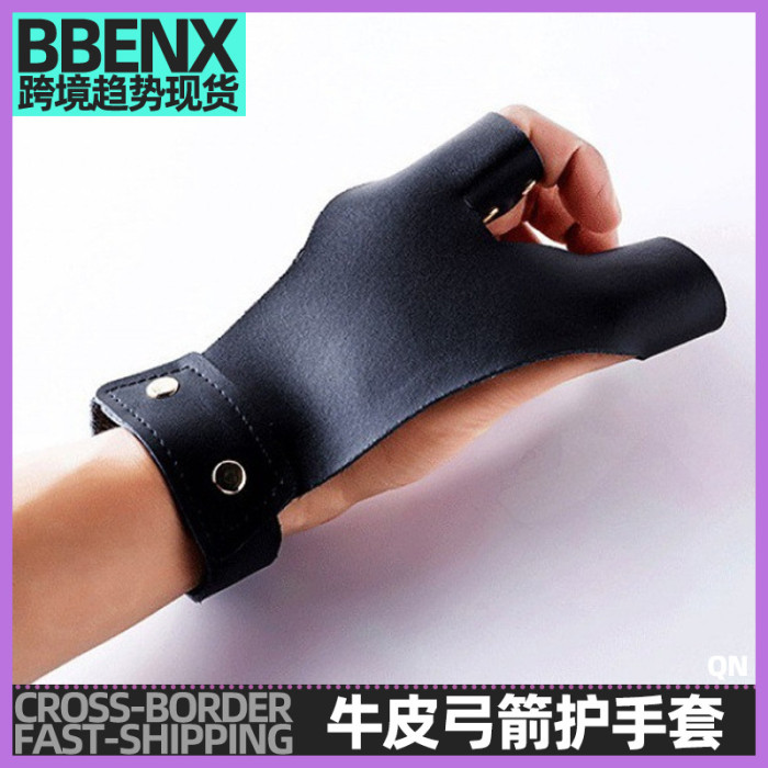 黑牛皮護手射擊射箭傳統反曲弓箭牛皮弓箭護手套調節卡扣射擊運動