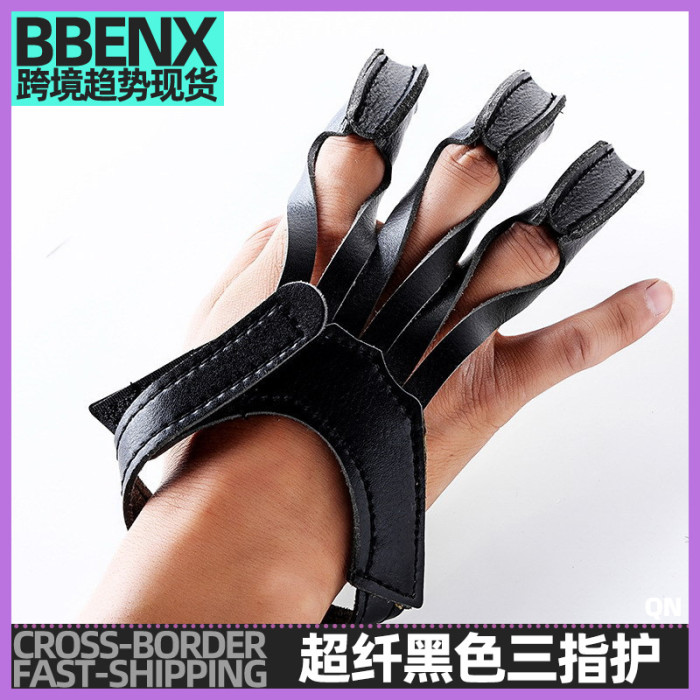 三指黑色超纖護指射擊射箭傳統反曲射箭射擊護具弓箭地中海防護套