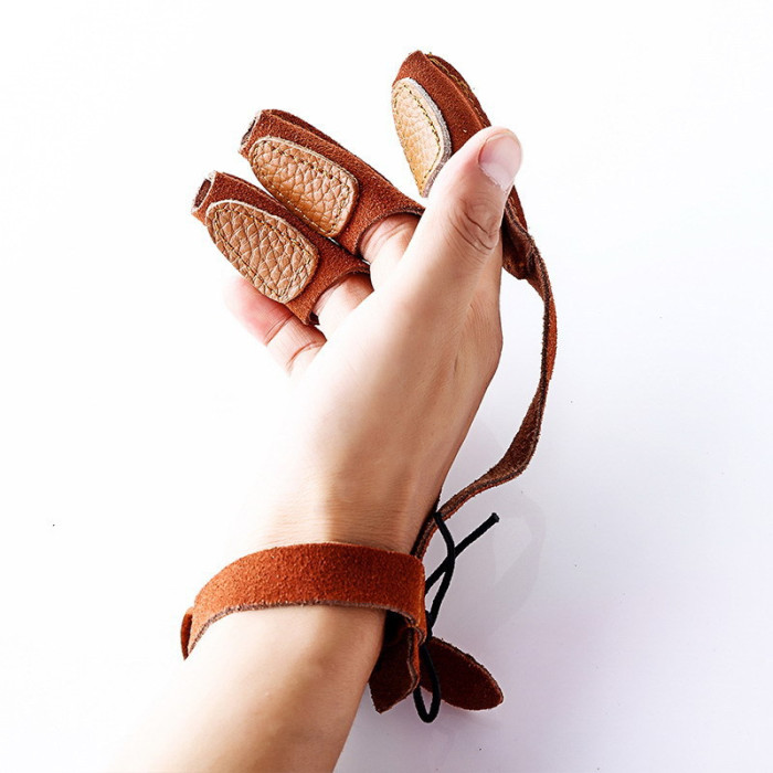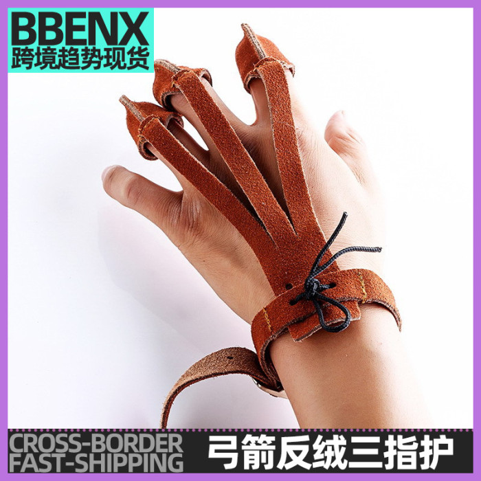 棕色反絨毛護指射箭傳統反曲弓箭反絨三指護野外獵弓護臂反曲弓箭
