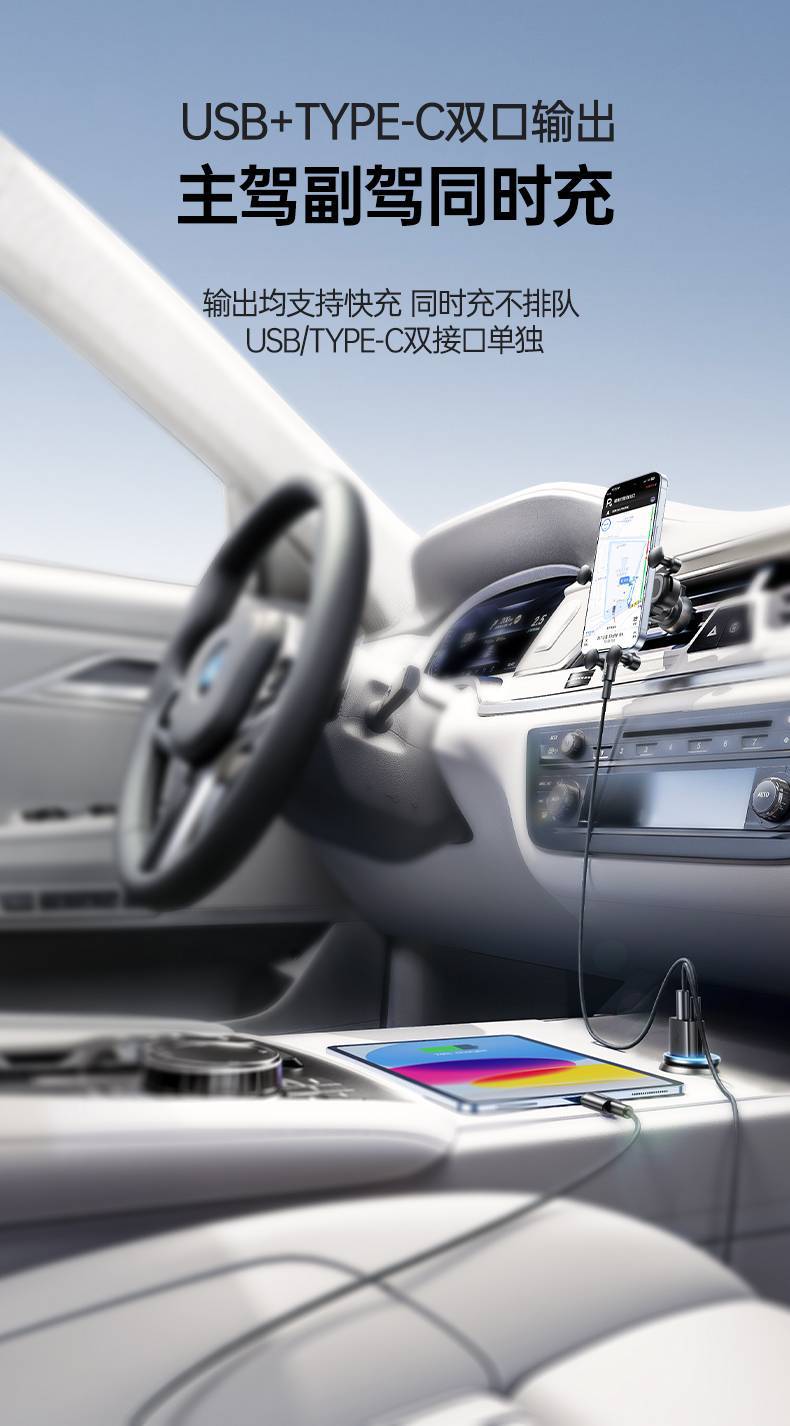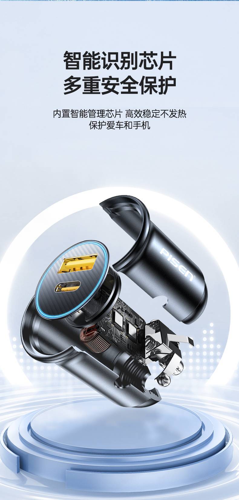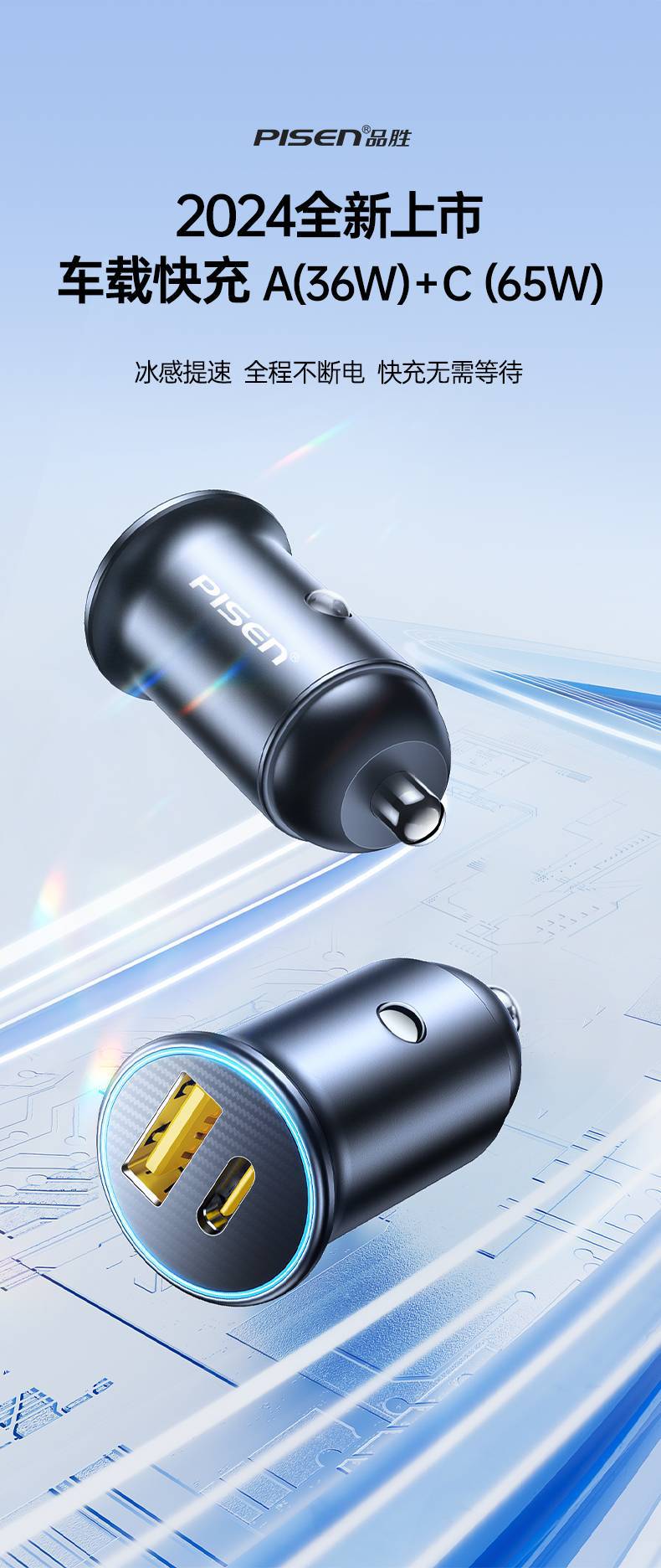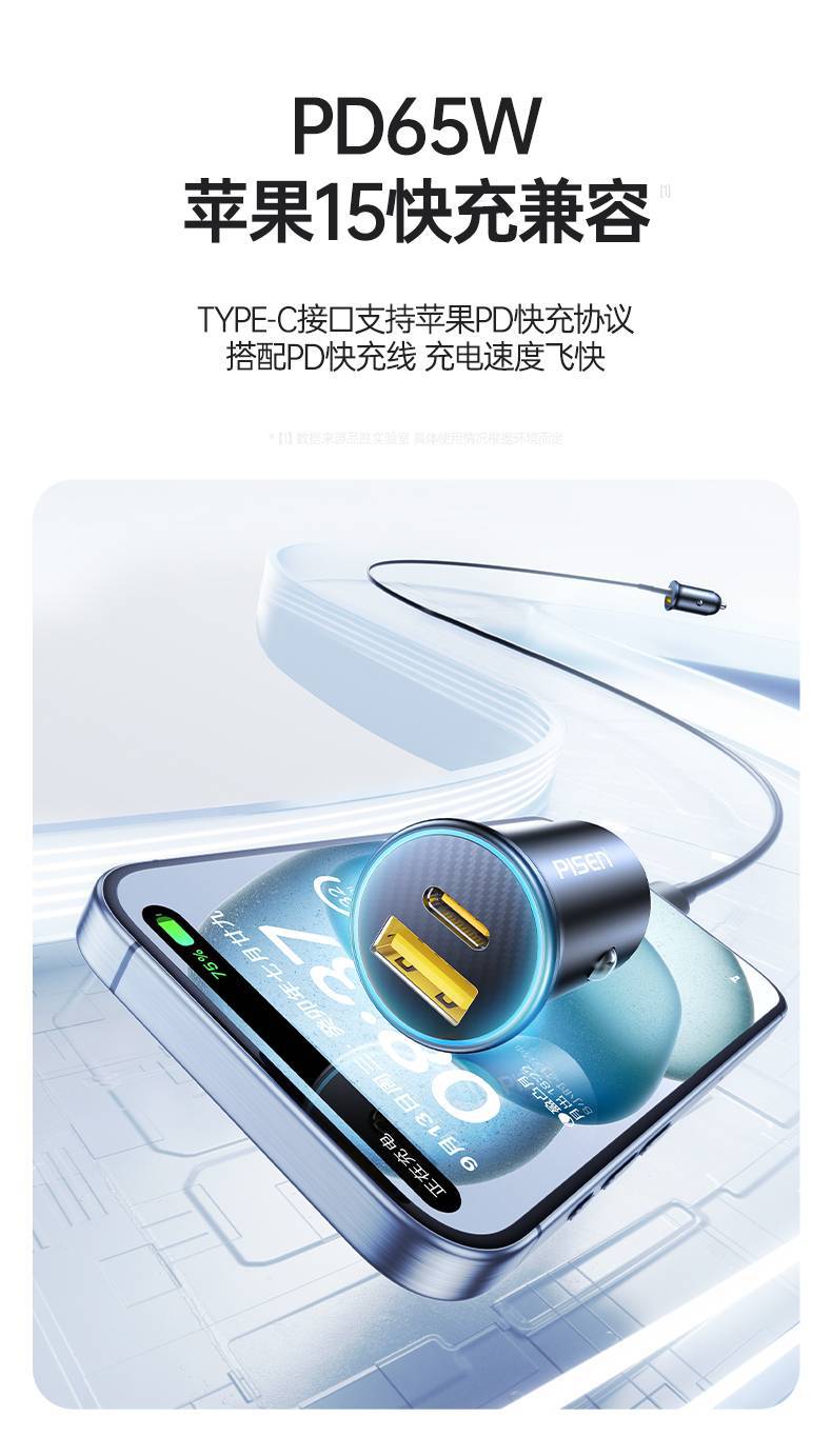 品勝車用充電器PD65W適用蘋果15超級快充汽車點菸器轉換插頭車充