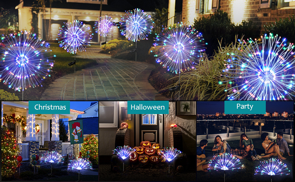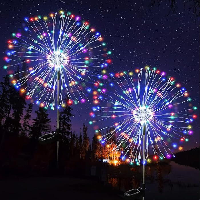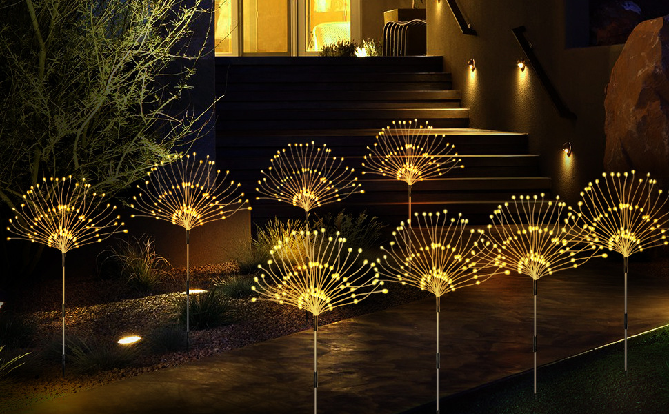 led太陽能地插菸花燈蒲公英燈串戶外節日庭院花園裝飾草坪燈