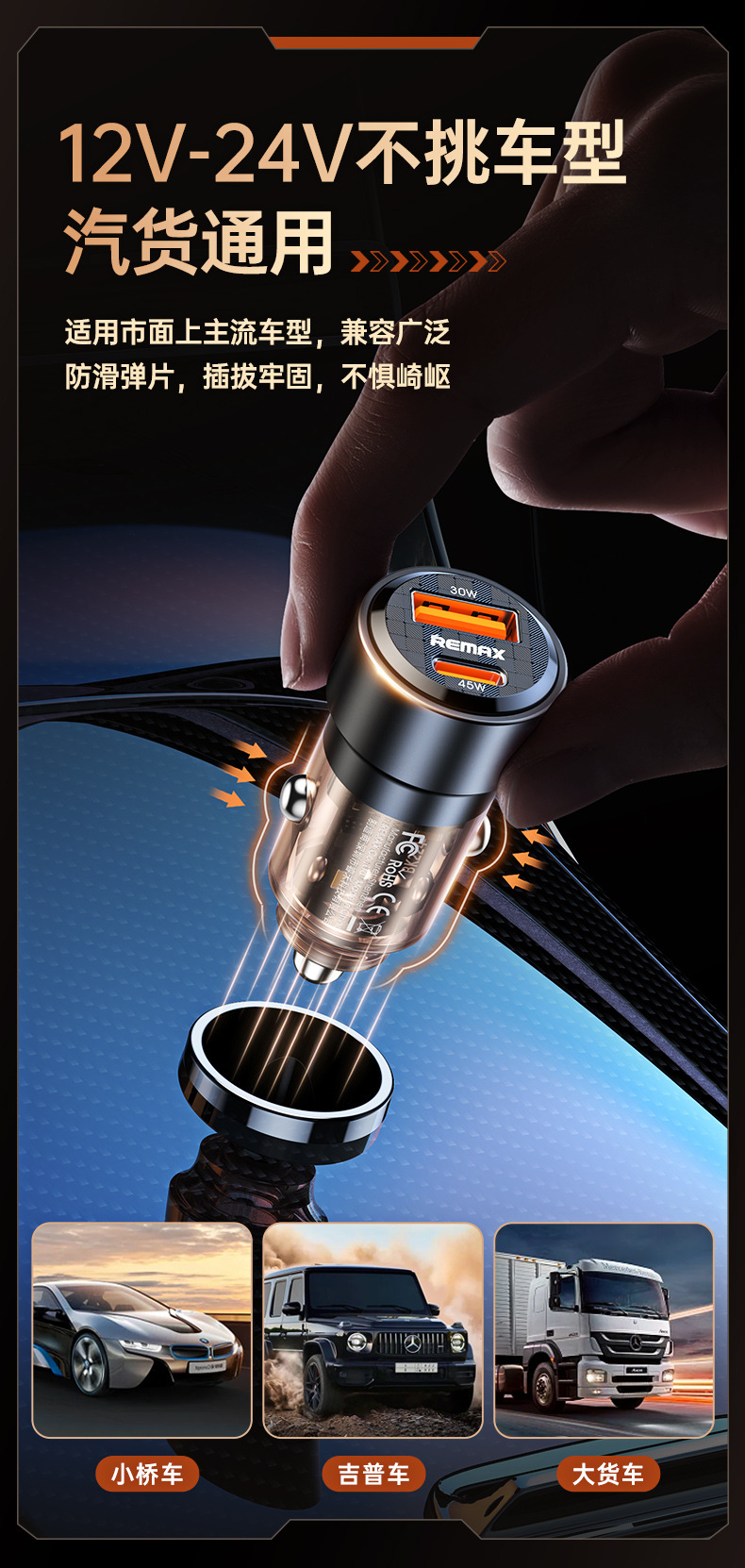 remax PD75W大功率車用充電頭 Type-C口車用手機充電器車用充頭