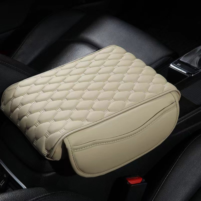 2024新款汽車扶手箱墊記憶棉扶手箱增高墊肘托墊納帕皮收納豆豆款