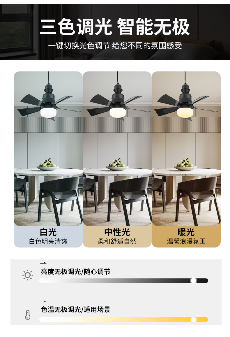 LEDe27風扇燈遙控多功能三色調光家用臥室兒童書房客廳風扇燈
