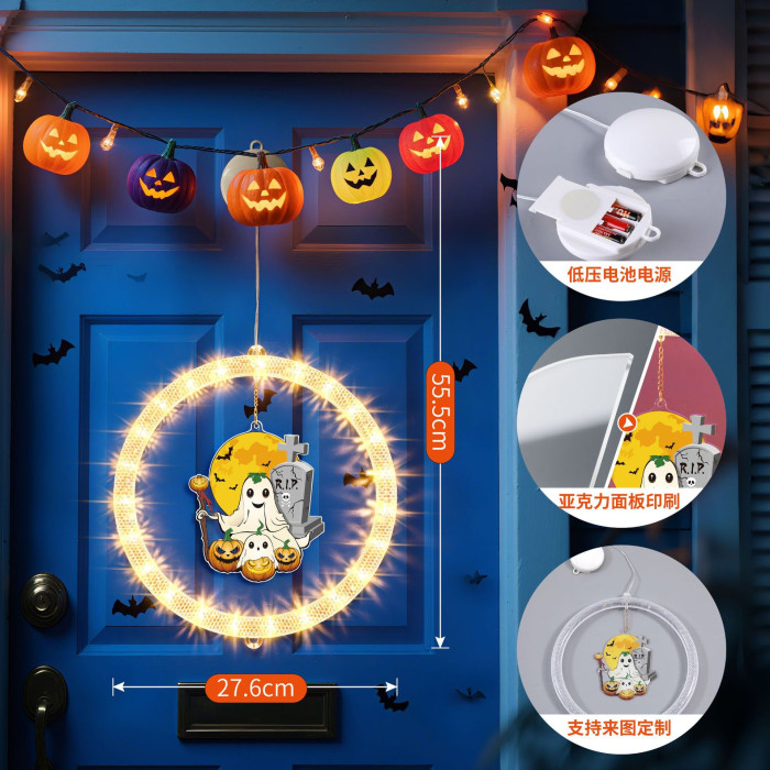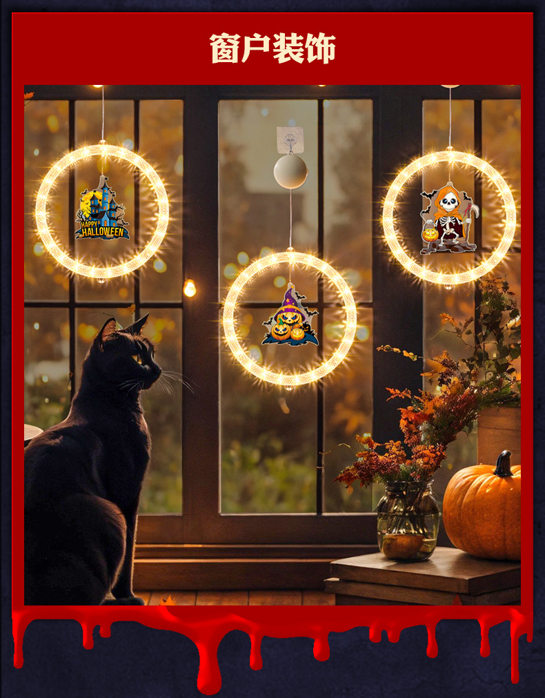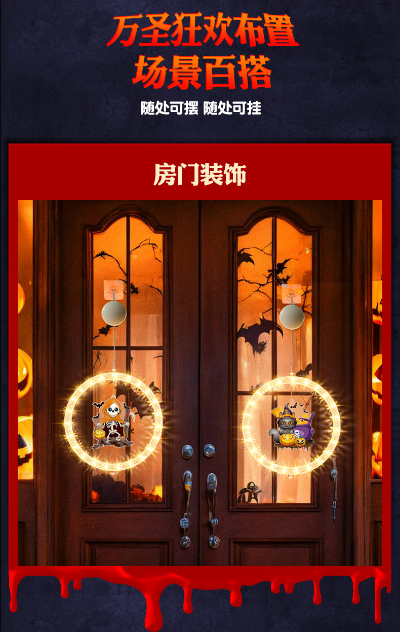 2025萬聖節幽靈城堡吸盤led彩燈掛件鬼節氛圍室內裝飾布置掛飾