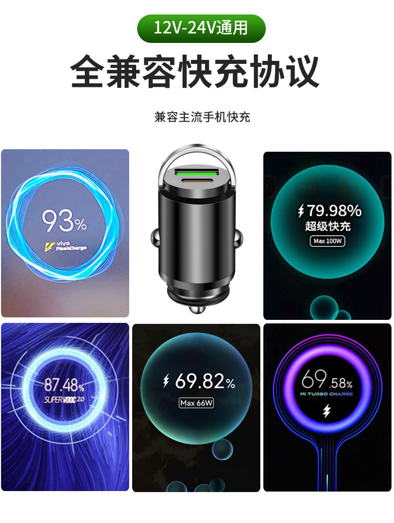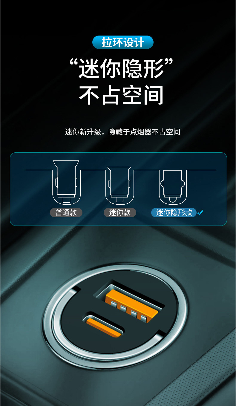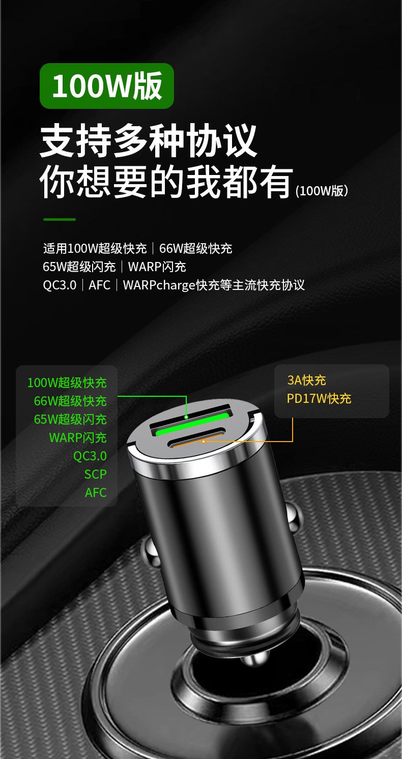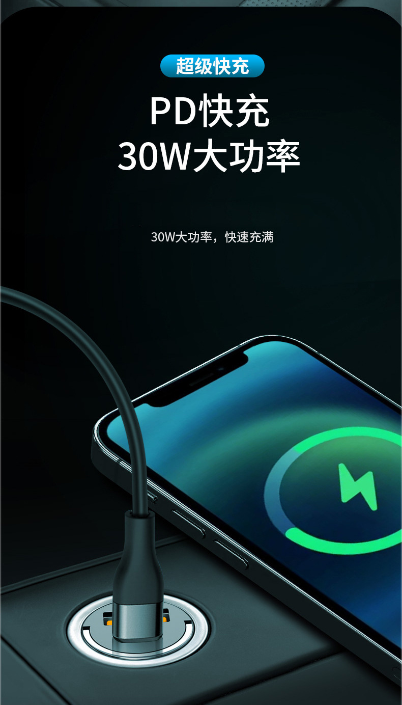 100W超級快充車用充電器PD30W隱形快充汽車用點菸器轉換插頭