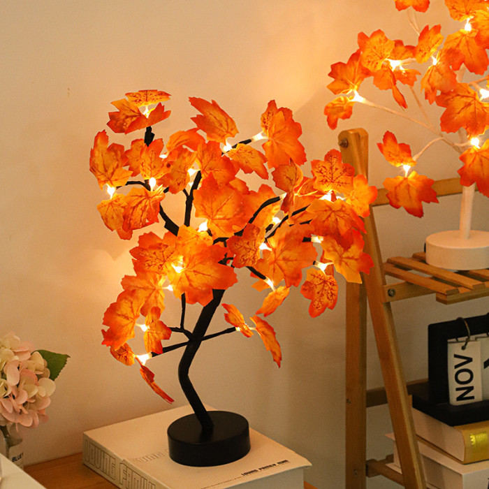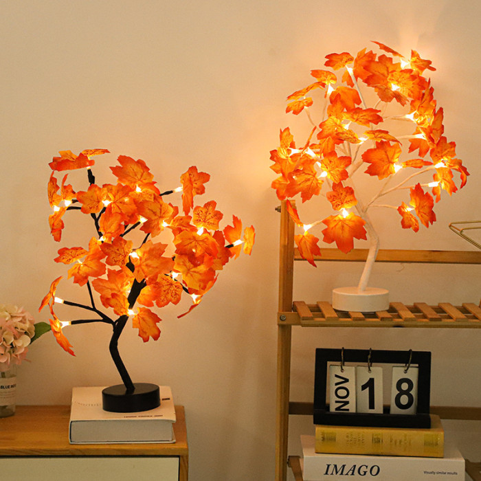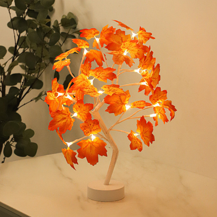 新款led樹燈仿真白楓葉樹燈房間裝飾小夜燈感恩節氛圍裝飾燈