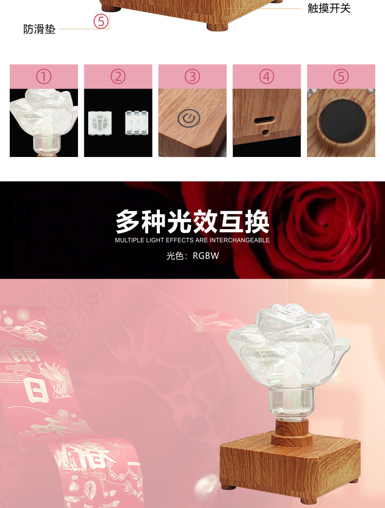 創意禮品小夜燈氛圍燈透明台燈生日禮物床頭燈擺件創意燈七夕禮物