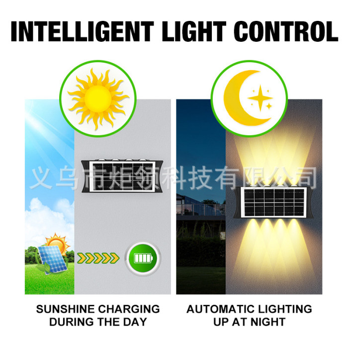 新款太陽能上下發光庭院燈戶外防水別墅景觀燈家用氛圍洗牆燈