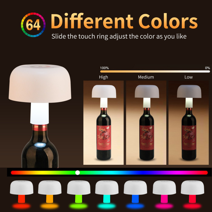 簡約蘑菇酒瓶燈可移動創意充電燈酒吧餐廳氛圍燈可用酒瓶塞