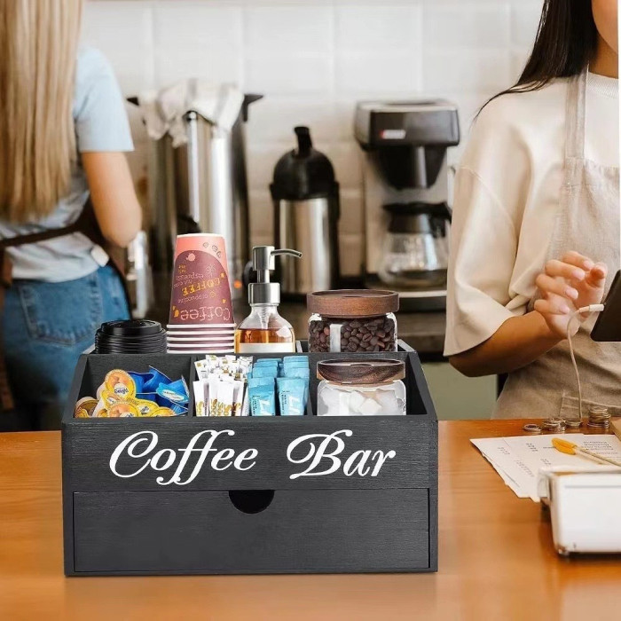木質收納盒 台面咖啡包儲物盒調味品收納盒多格茶包飲料包木盒
