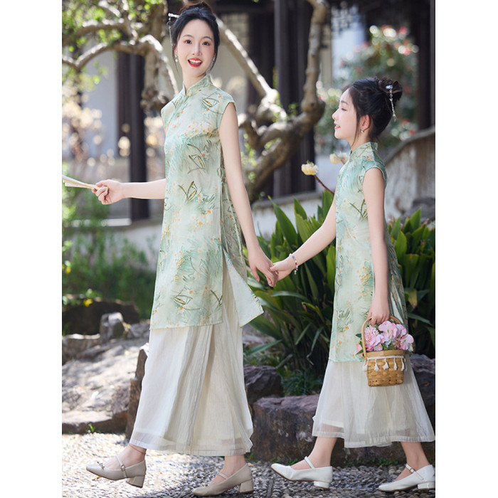 女童旗袍夏季新中式風兒童漢服連衣裙套裝2025新款親子裝母女