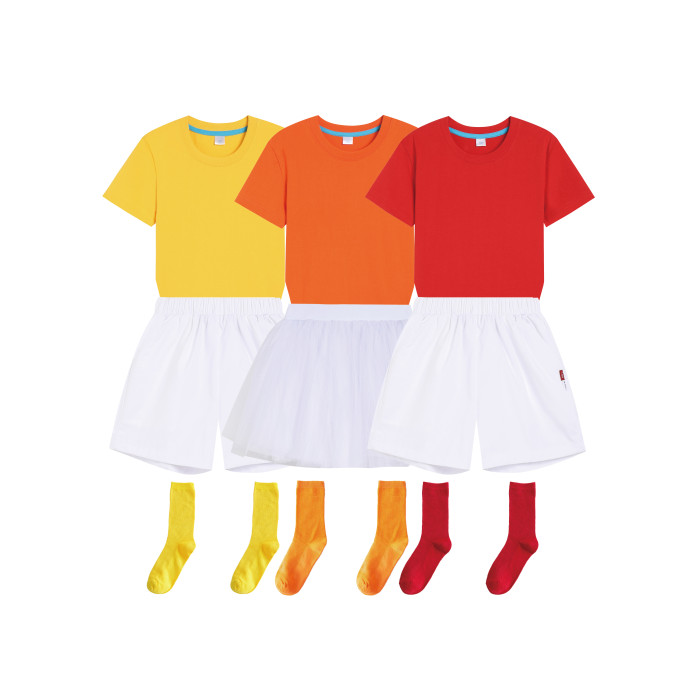 橘色T恤+白色(短褲)+同色襪 男生