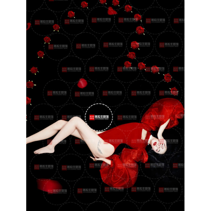 網紅爆款性感私房藝術照寫真聖誕節主題攝影服裝紅色泡泡袖連體衣