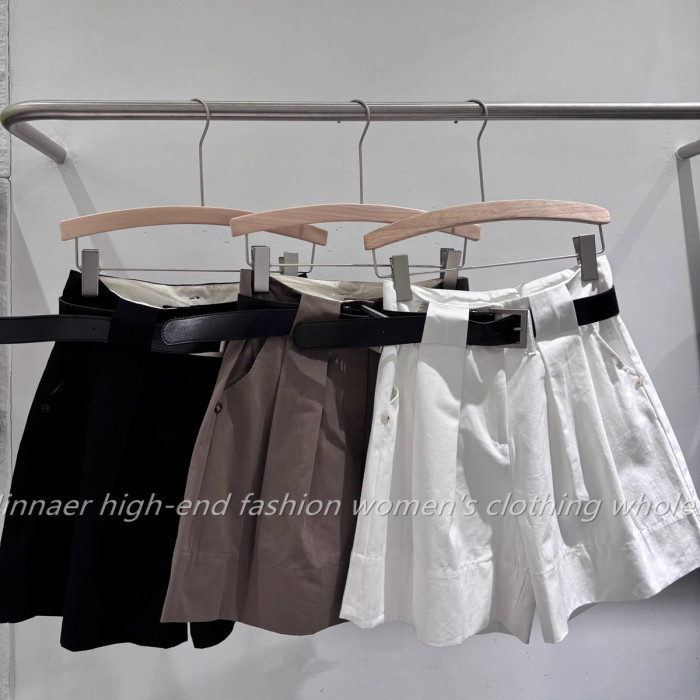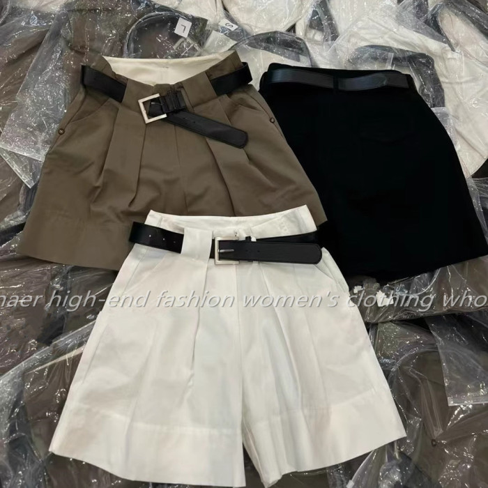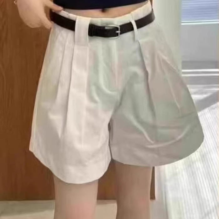 歐洲站25夏季新款工裝風卷邊高腰寬松休閒女短褲褶皺A字濶腿熱褲
