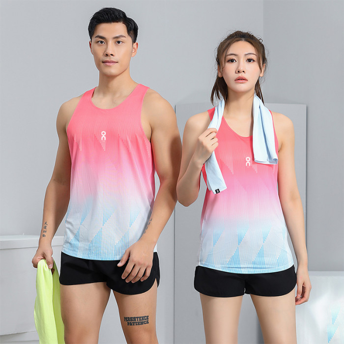 夏季健身跑步戶外運動馬拉松秀禾服速乾透氣漸變背心男女無袖T恤