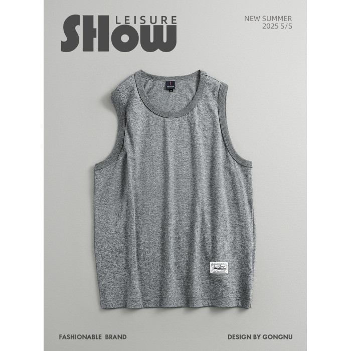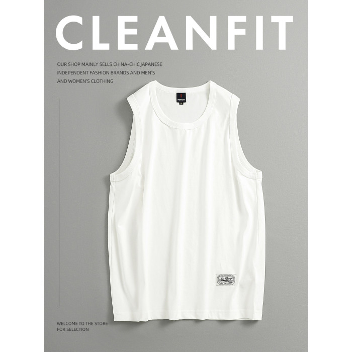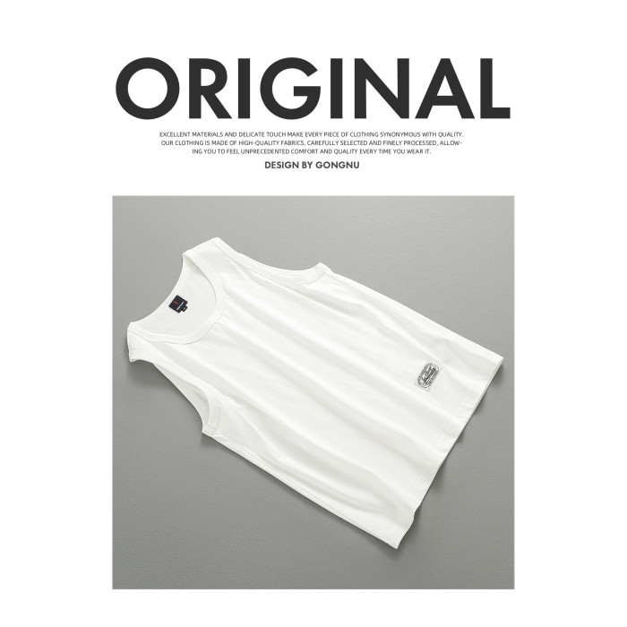 夏季日系休閒 潮牌220g純色百搭重磅設計感包邊無袖背心T恤 男