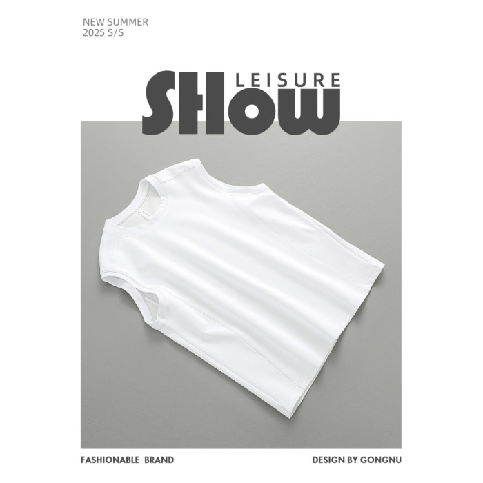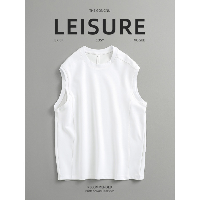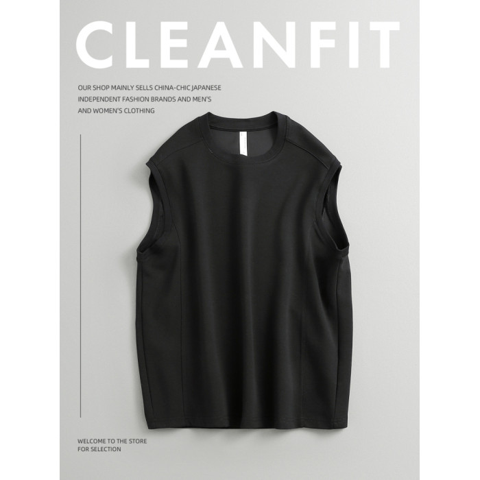 夏季日系休閒 潮牌簡約重磅純色百搭寬松無袖坎肩背心T恤 男