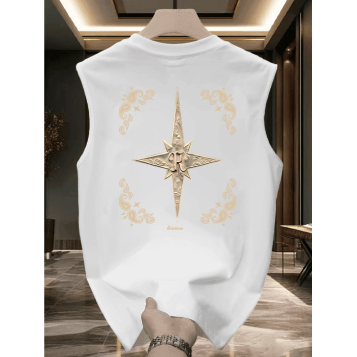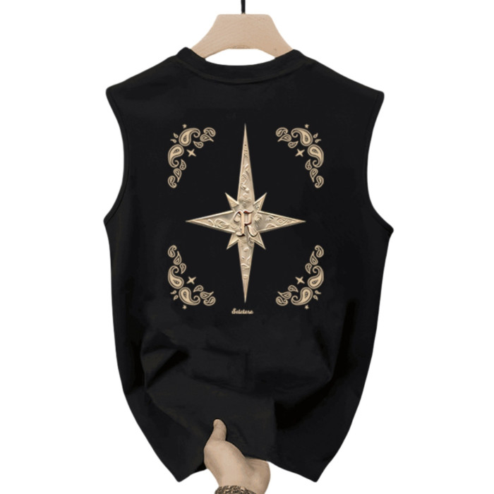 MAROLIO~美式痞帥!潮牌寬松圓領背心男夏季純棉透氣無袖坎肩體恤