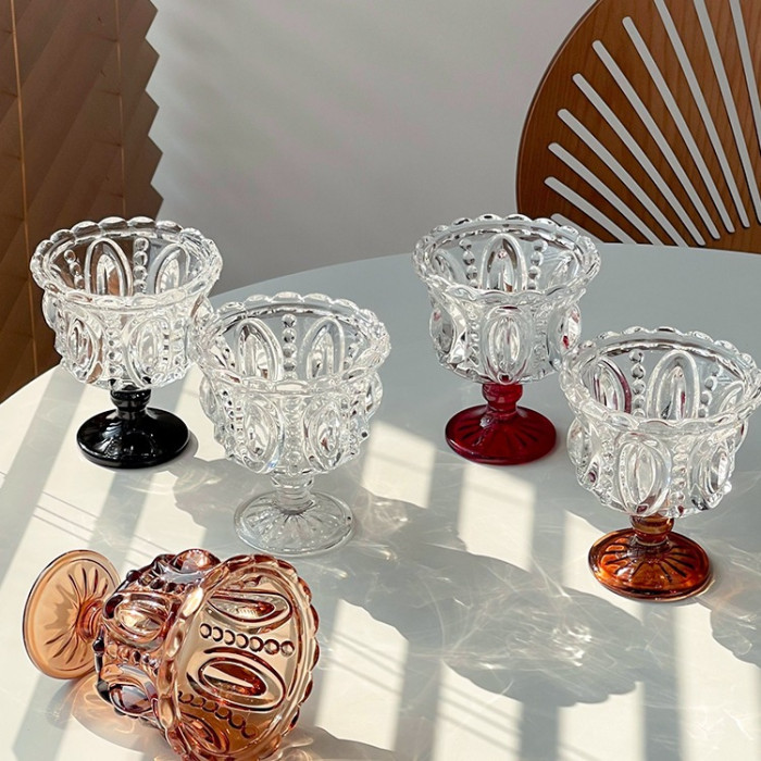 法式浪漫復古浮雕香檳杯高顔值中古微醺酒杯紅酒高腳甜酒玻璃杯子